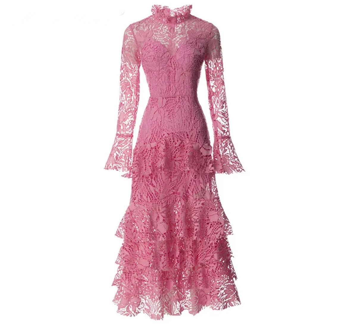 Runway long flare sleeve lace dress