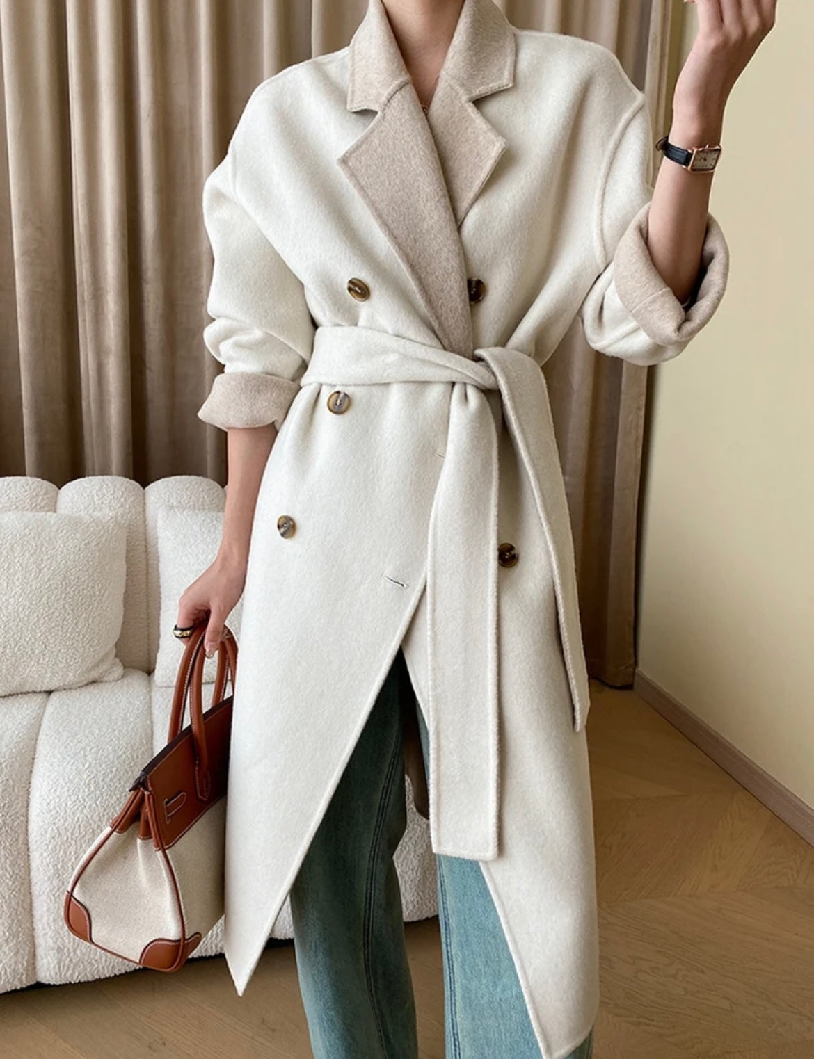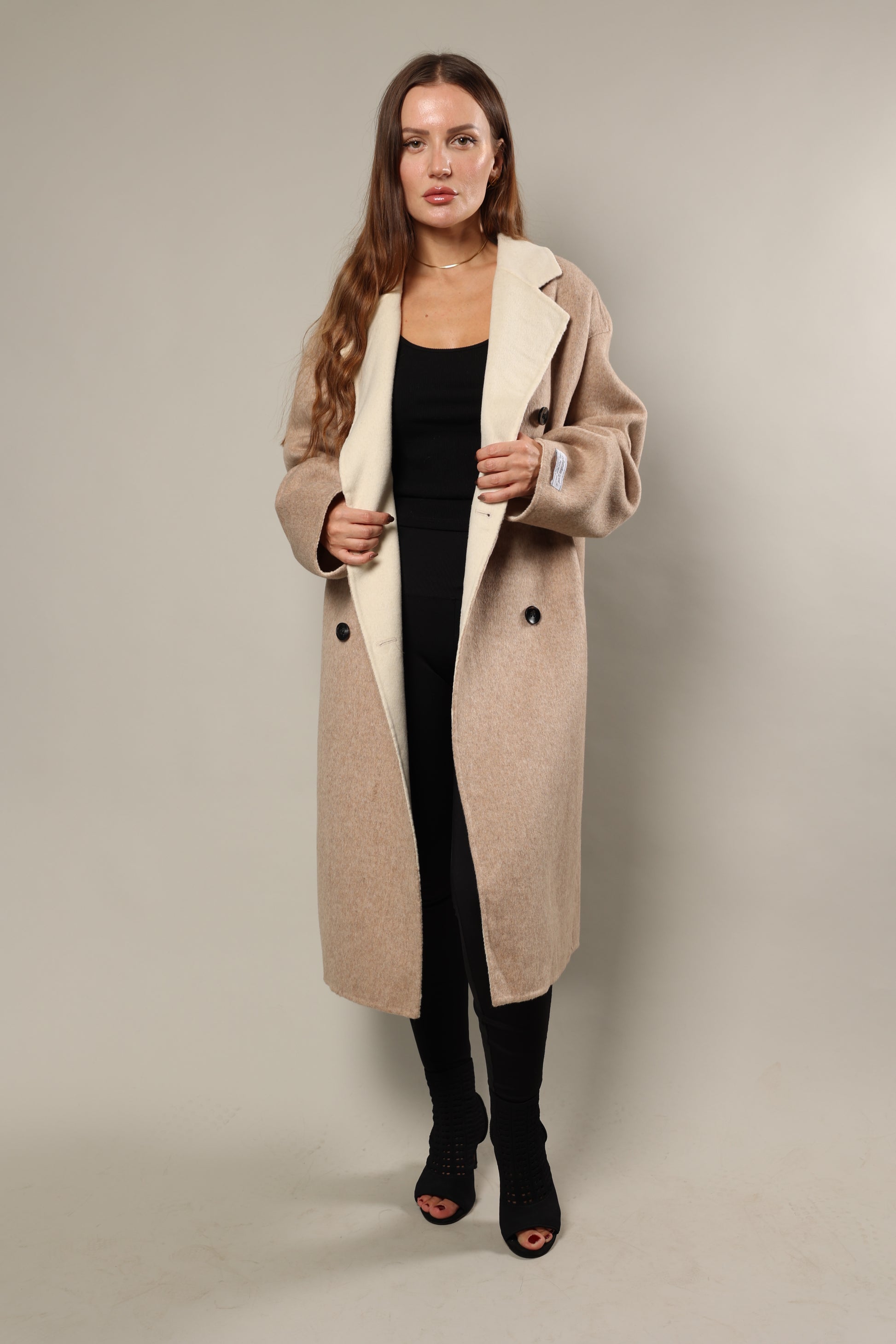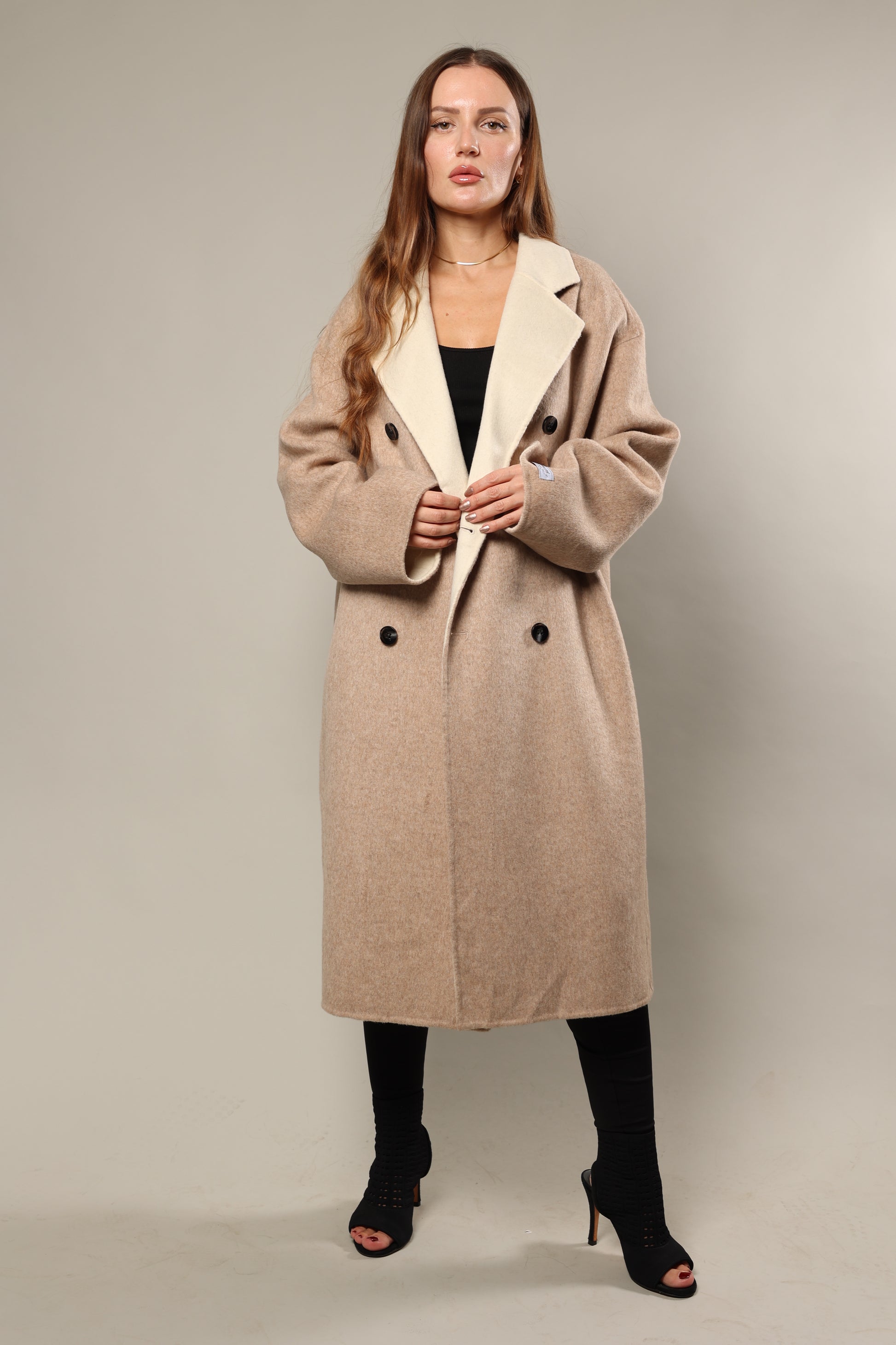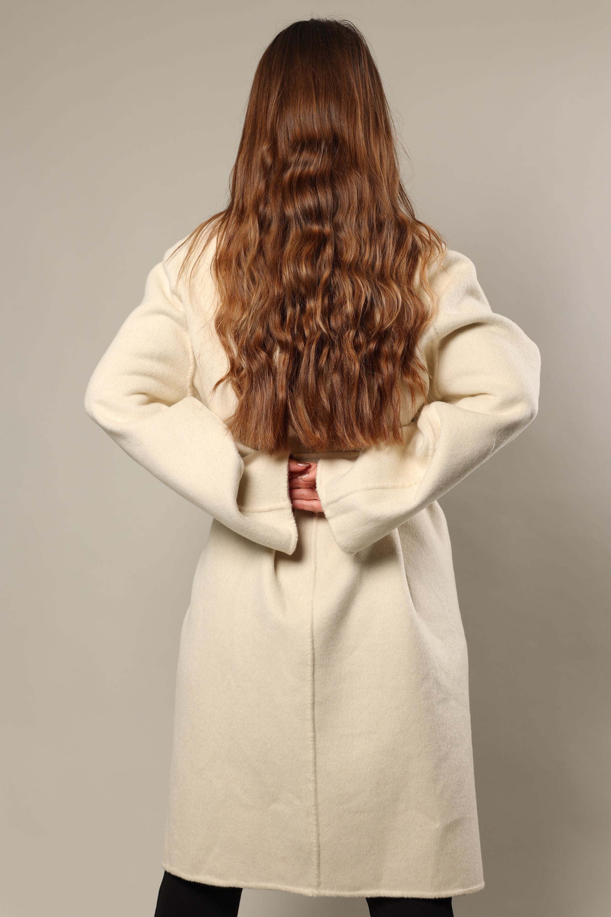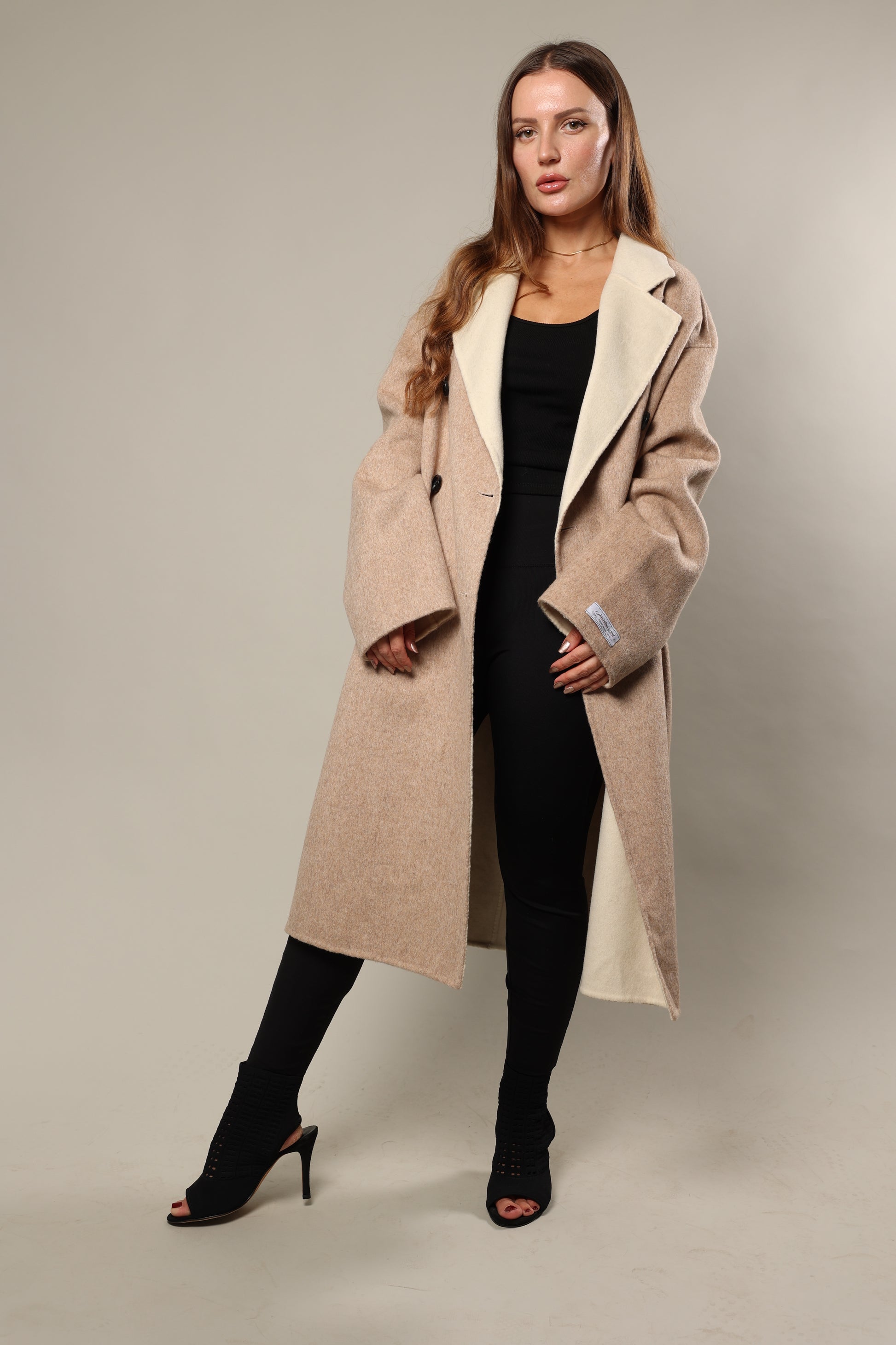 كوت مصنوع من الصوف يمكن لبسه من الجهتين الاوف وايت والبيج