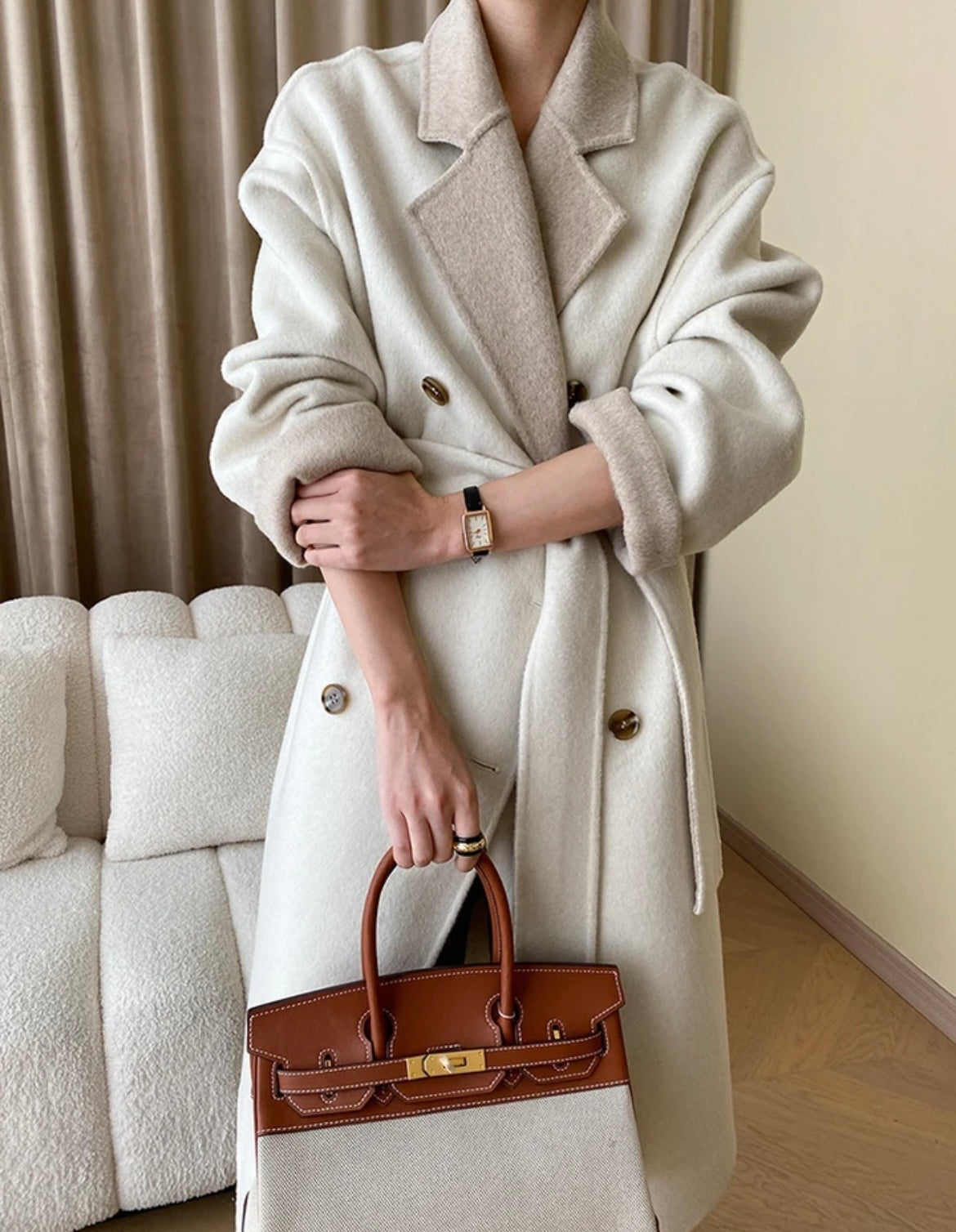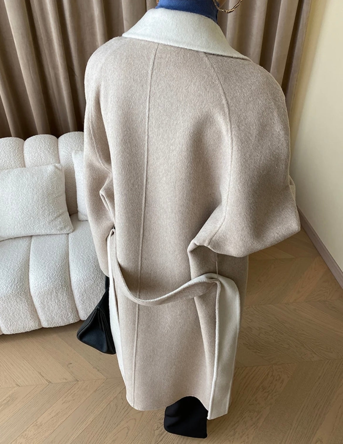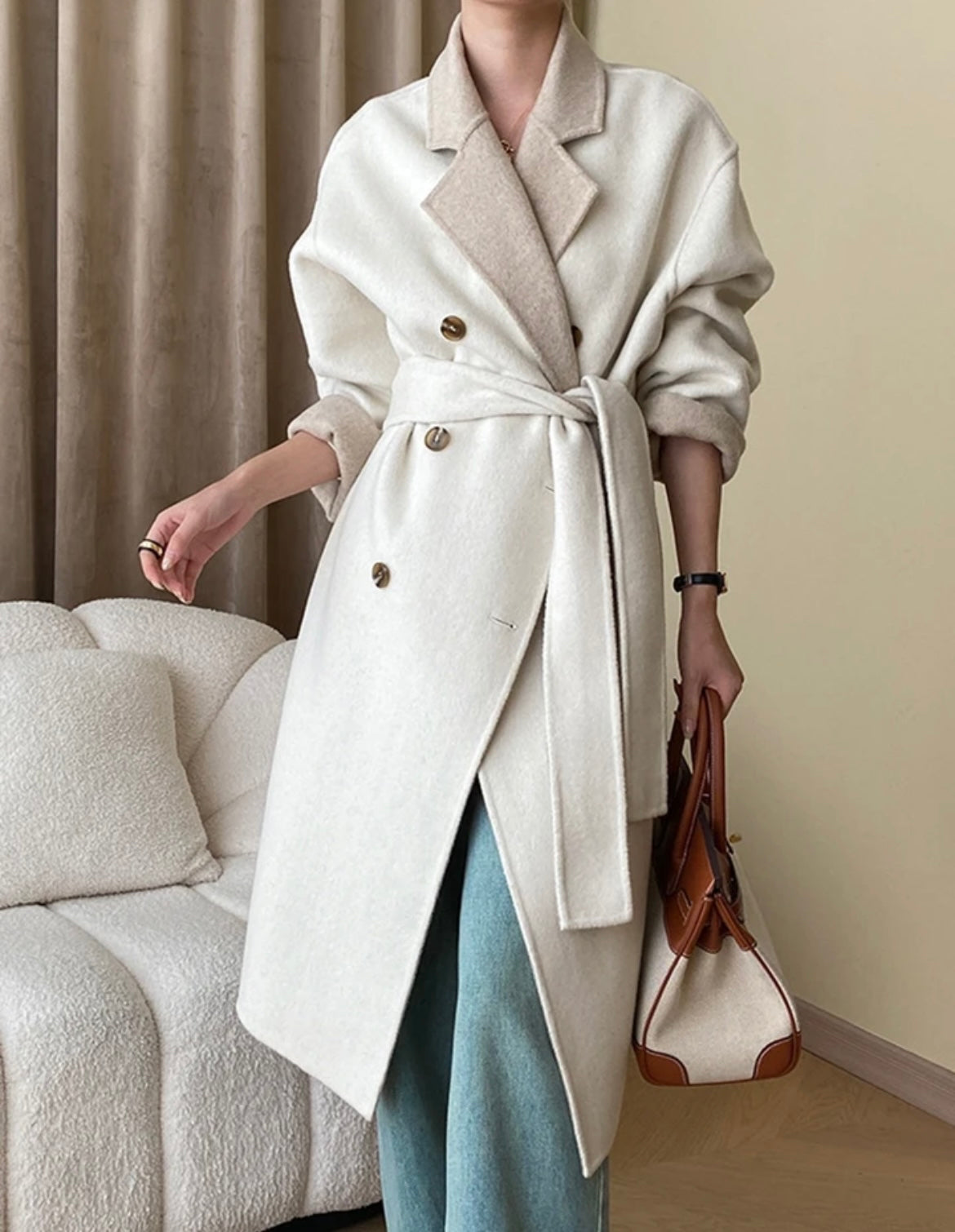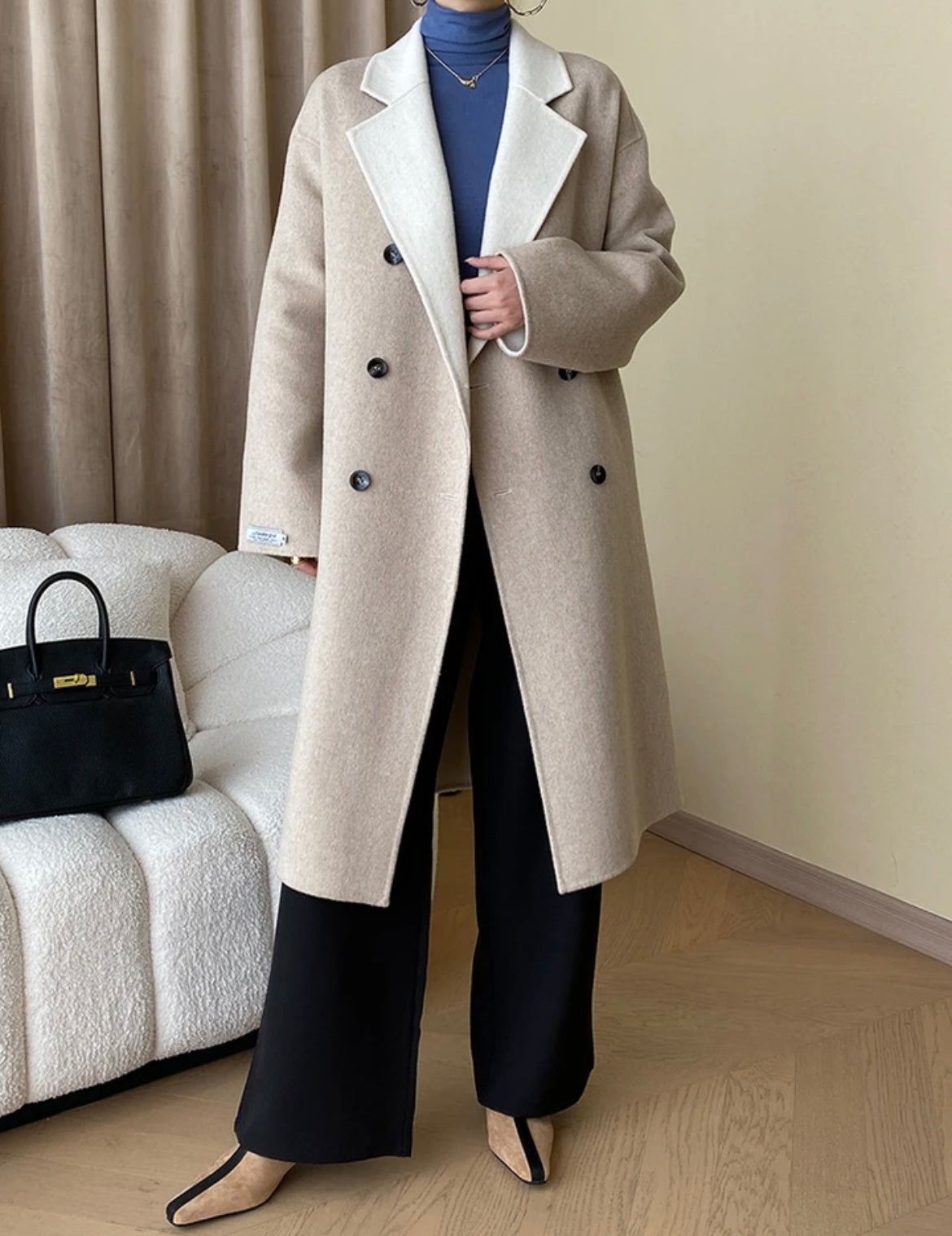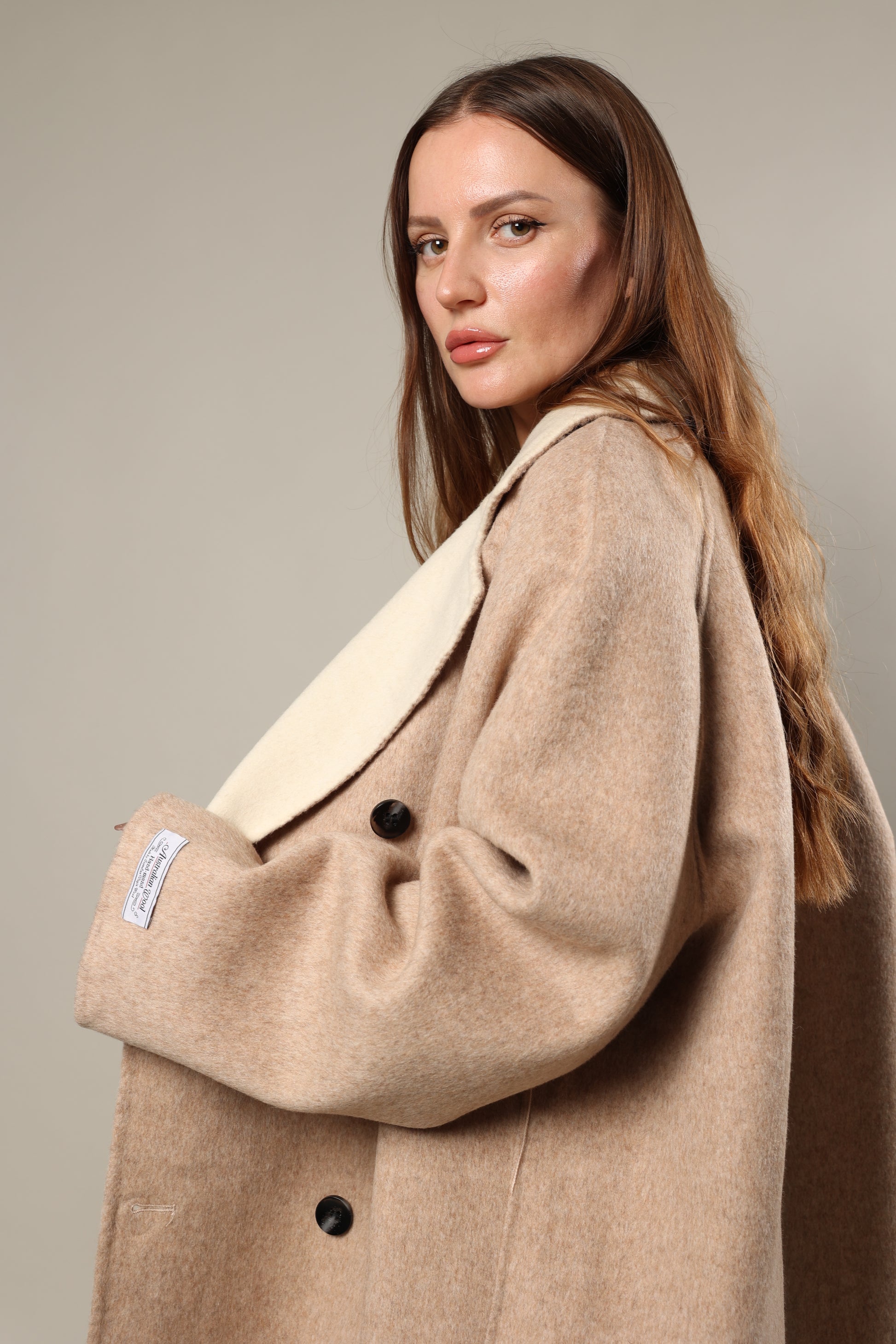 كوت مصنوع من الصوف يمكن لبسه من الجهتين الاوف وايت والبيج